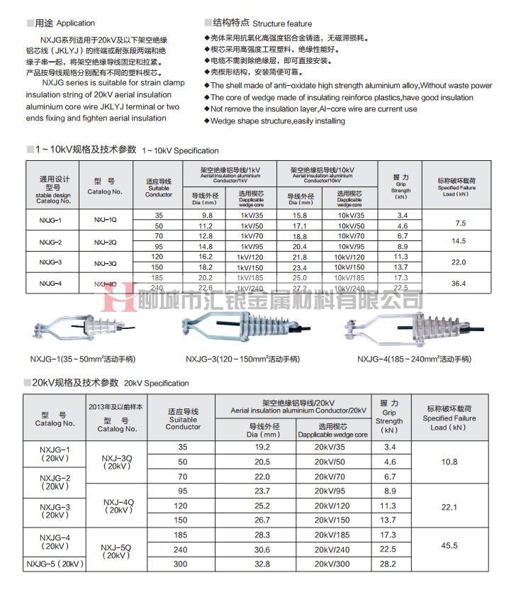 • NXJG系列楔型絕緣耐張線夾(鋁絞線架空絕緣電纜用